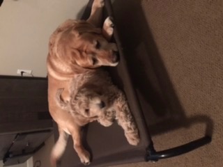 Kevin is doing great! Him and his brother love to play! Especially when it’s time to go to bed 🤪. He lovessss to eat, and has Started plowing through the dog door like a big boy! He was 17 lbs at his last check up, so probably about 18 now. We’ve officially given up and he has free roam of the house while we are at work. He hates his crate but goes in big brothers any chance he gets 😂